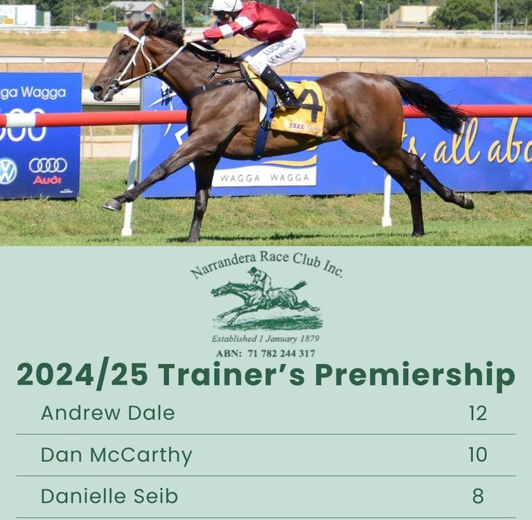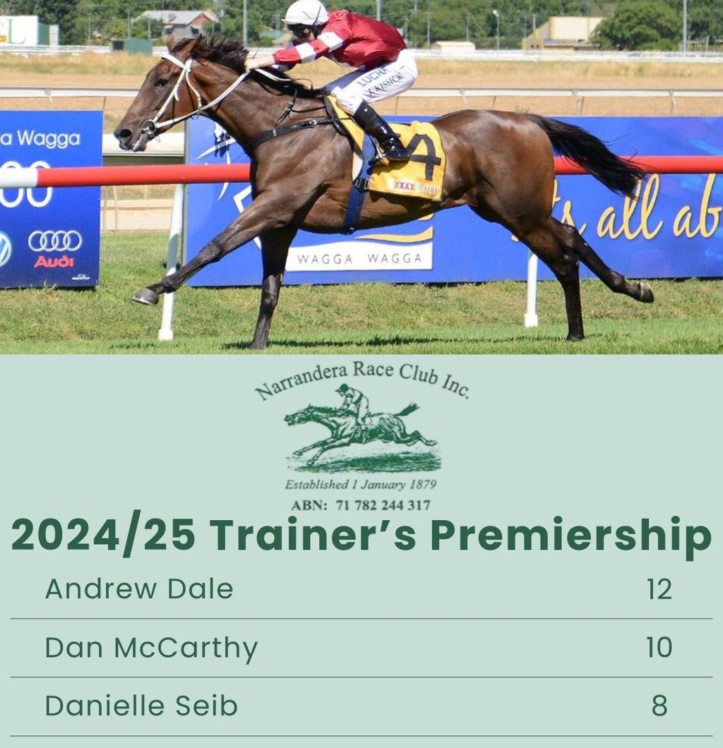 Wangaratta visitor Andrew Dale was our leading trainer with 12 points, while Narrandera-based jockey John Kissick dominated the jockey's premiership with 19 points.